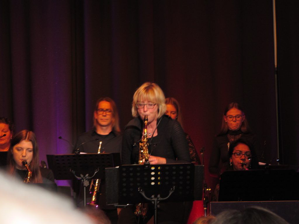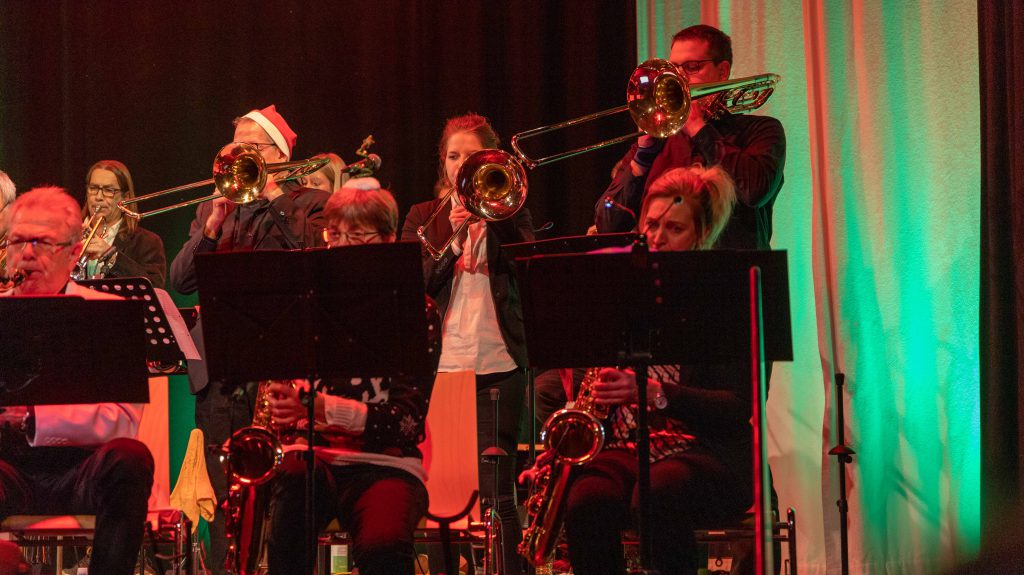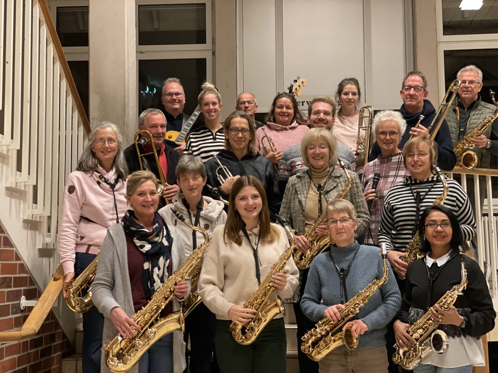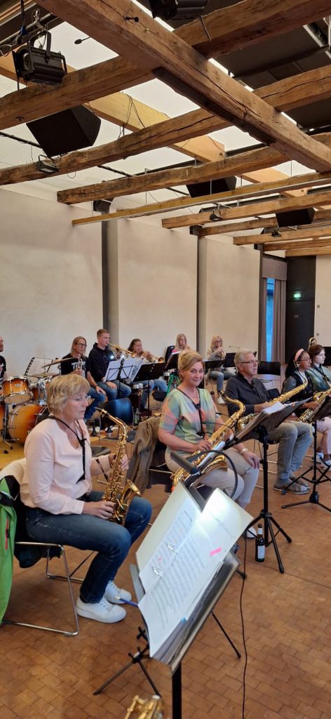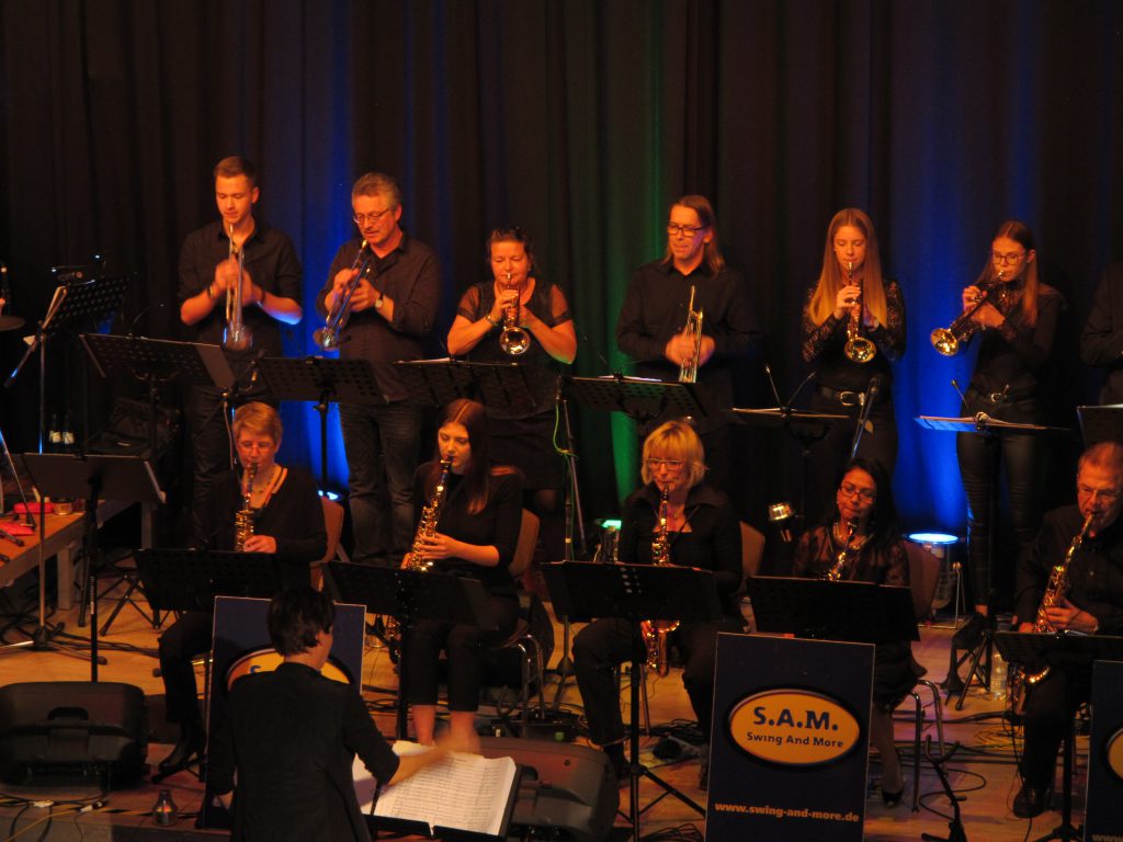 Uns macht die gemeinsame Musik viel Spaß und bereitet auch anderen eine Menge Freude. Mit Enthusiasmus und Leidenschaft leitet Susanne Harwardt seit mehr als 2 Jahrzehnten unser Big-Band. BeS(ch)WINGT und motiviert sind auch alle Musiker*innen, was man an der vorherrschenden Spielfreude unserer Big-Band „Swing-and-More“ live erleben kann. Durch das sympathische Erscheinungsbild haben wir uns schon in die Herzen und Ohren vieler Zuhörer gespielt, die immer wieder gerne zu unseren Auftritten kommen. Dabei bringen wir eine Bandbreite von klassischen Big-Band-Arrangements aber auch populärer Titel zu Gehör, denn der Name Swing-and-More ist Programm. Unsere Lead-Sängerin Sigrid Eckey präsentiert z.B. Stücke wie It don’t mean a thing, Fever, It’s raining man oder Skyfall mit brillianter Stimme und passendem Klang. Auch unser Posaunist Thomas Kisling prägt durch seinen Gesang die Vielseitigkeit der Big-Band. Immer wieder bereichernd sind Neuzugänge, die den Sound und die Qualität bereichern. Zu guter Letzt geben unterschiedlichste Instrumental-Solisten aller Sections unserem Big-Band-Sound den letzten Schliff.