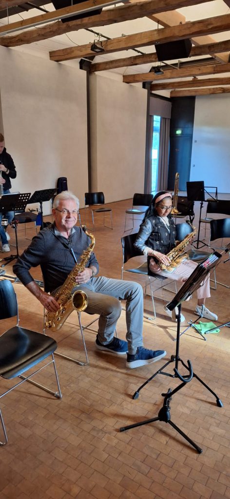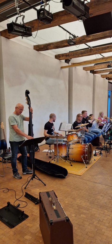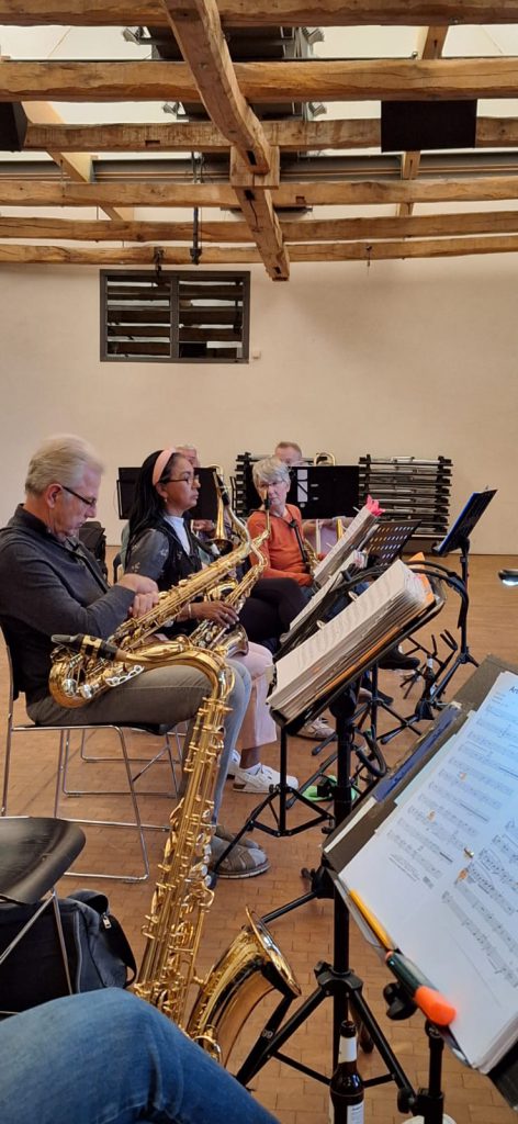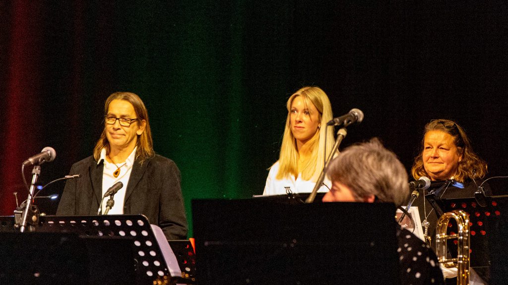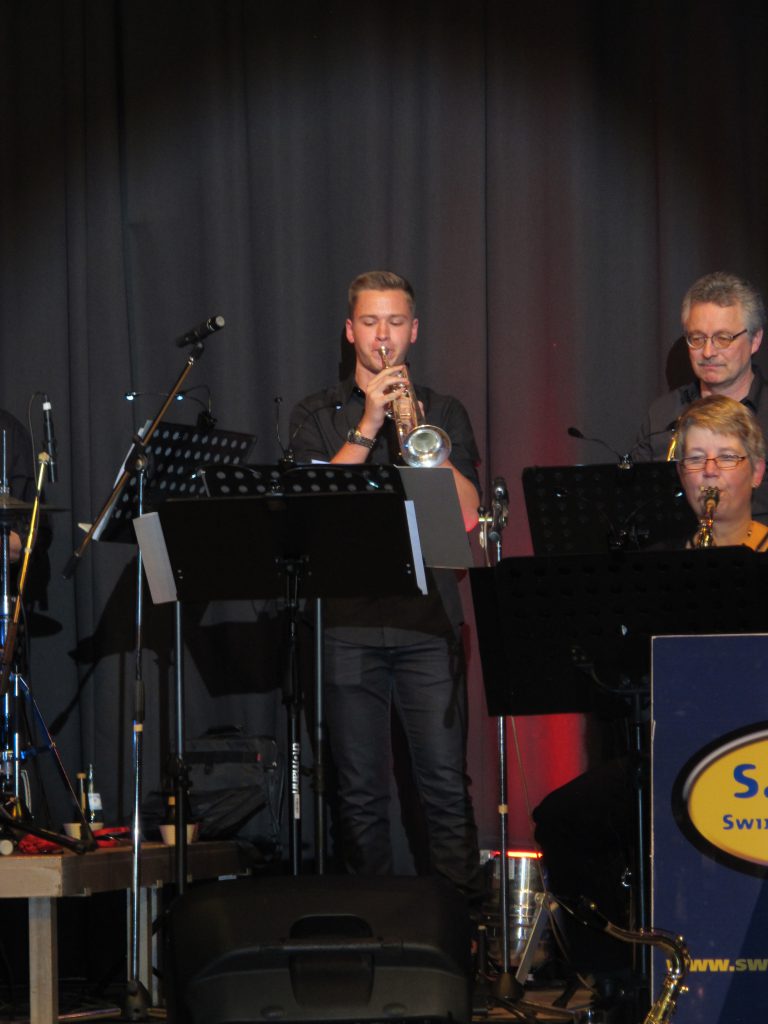 Uns macht die gemeinsame Musik viel Spaß und bereitet auch anderen eine Menge Freude. Mit Enthusiasmus und Leidenschaft leitet Susanne Harwardt seit mehr als 2 Jahrzehnten unser Big-Band. BeS(ch)WINGT und motiviert sind auch alle Musiker*innen, was man an der vorherrschenden Spielfreude unserer Big-Band „Swing-and-More“ live erleben kann. Durch das sympathische Erscheinungsbild haben wir uns schon in die Herzen und Ohren vieler Zuhörer gespielt, die immer wieder gerne zu unseren Auftritten kommen. Dabei bringen wir eine Bandbreite von klassischen Big-Band-Arrangements aber auch populärer Titel zu Gehör, denn der Name Swing-and-More ist Programm. Unsere Lead-Sängerin Sigrid Eckey präsentiert z.B. Stücke wie It don’t mean a thing, Fever, It’s raining man oder Skyfall mit brillianter Stimme und passendem Klang. Auch unser Posaunist Thomas Kisling prägt durch seinen Gesang die Vielseitigkeit der Big-Band. Immer wieder bereichernd sind Neuzugänge, die den Sound und die Qualität bereichern. Zu guter Letzt geben unterschiedlichste Instrumental-Solisten aller Sections unserem Big-Band-Sound den letzten Schliff.